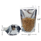 100 Pcs Resealable Zip Lock Mylar Bag, Stand Up Pouch Bags, Heavy Duty Clear Silver Front with Aluminum Foil Back, Smell Proof Pouches for Food Storage, 3.5" x 5.9" Inch