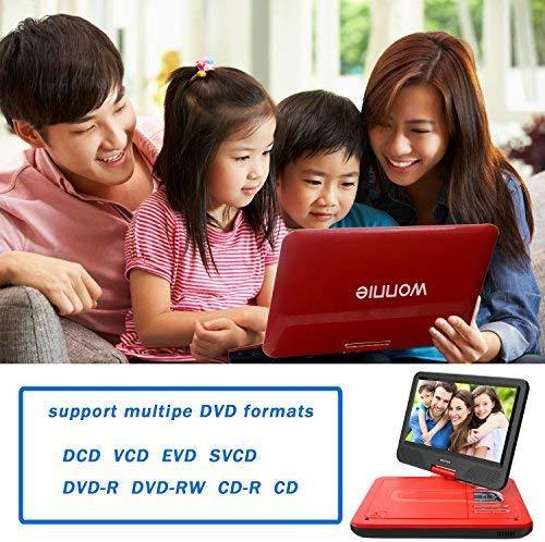 WONNIE 12.5 Inch Portable DVD Player, 10.5" Swivel Screen, 4 Hour Rechargeable Battery, USB / SD Slot (RED)
