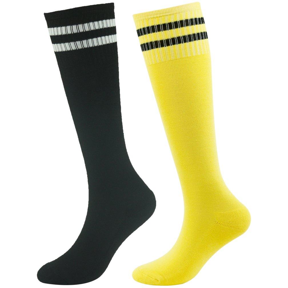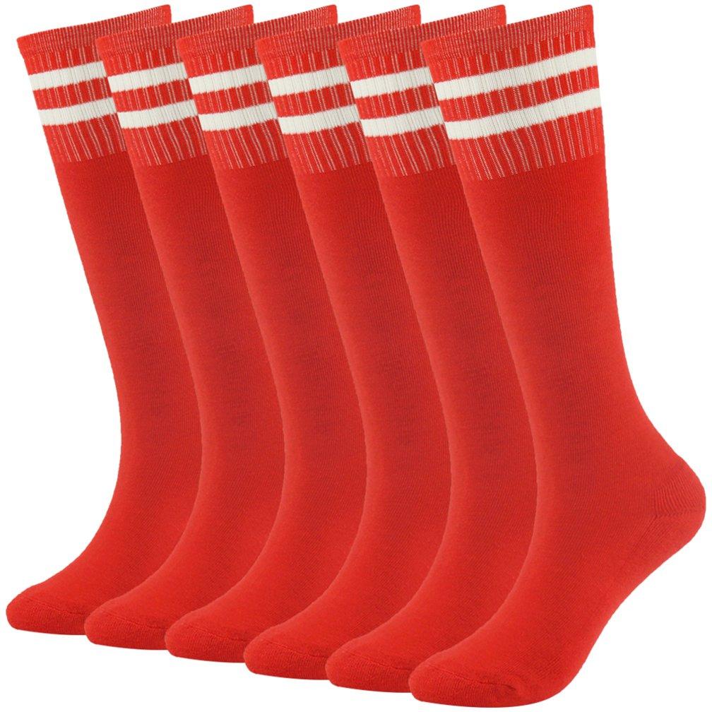 Youth Soccer Socks Fasoar Teens Knee High Football Socks Long Striped Rugby Tube Socks 2/6/10 Pairs