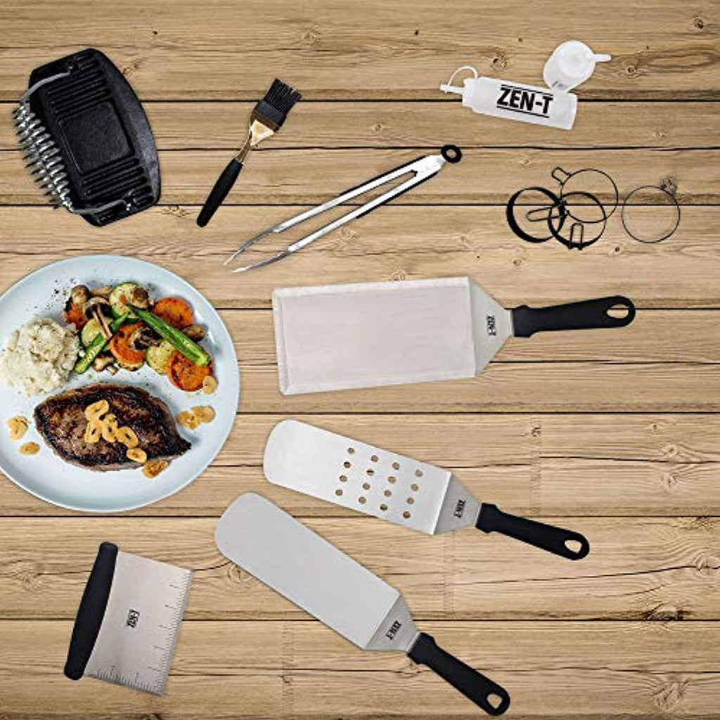 ZEN-T - 14 Piece Grill Griddle BBQ Tool Kit - Heavy Duty Professional Grade Stainless Steel BBQ Tools - Perfect Grilling Utensils for All Your Grilling Needs - Outdoor and Indoor BBQ