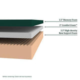 Conforming Green tea memory foam comfort in New cozy narrow twin size measuring 30 x 75 inches Mattress layers include: 1 inch memory foam, 5 inches airflow high-density base support...