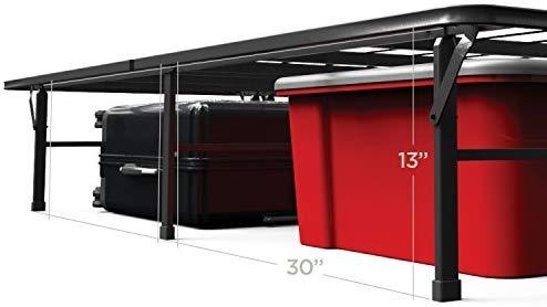 14 inches high with 13 inches of clearance under the frame for valuable under bed storage space No tools are required, assembles in minutes Best fit for average weight people;...