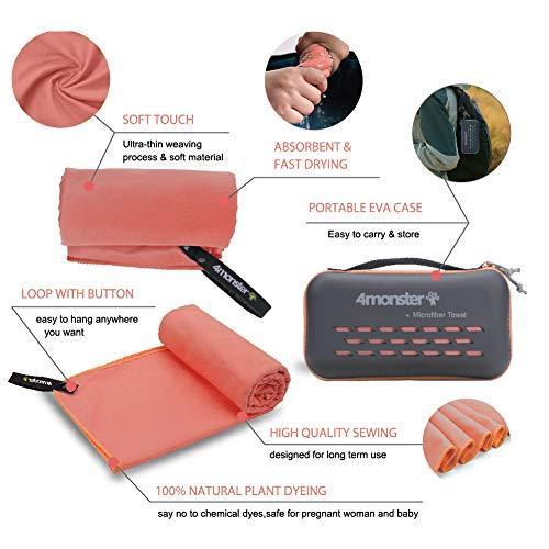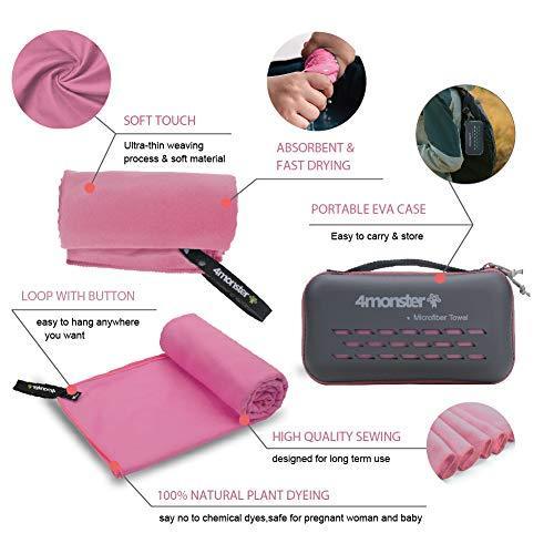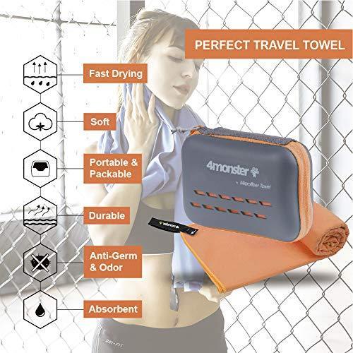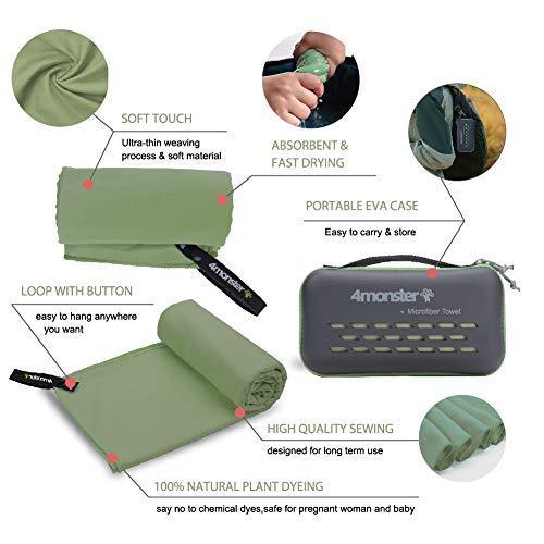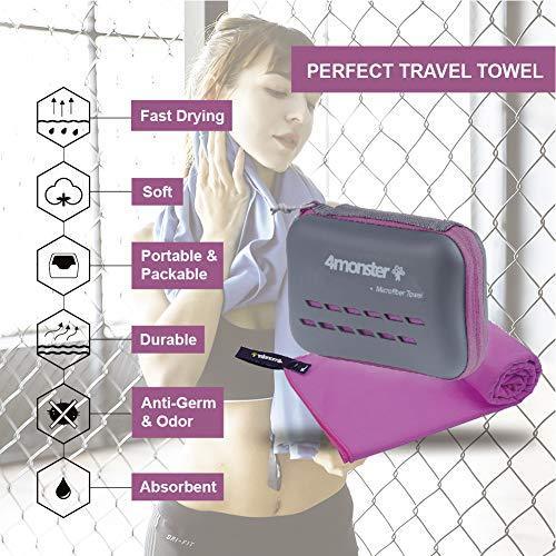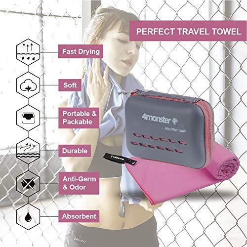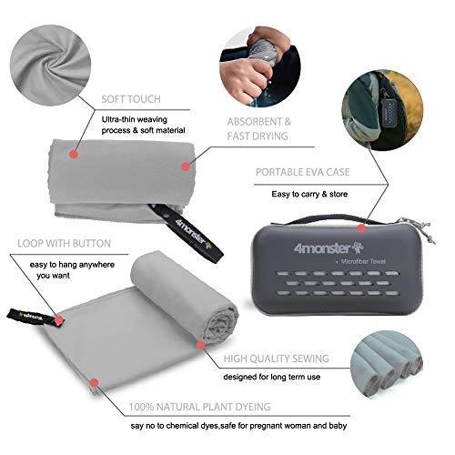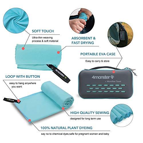 4Monster Camping Towels Super Absorbent, Fast Drying Microfiber Travel Towel, Ultra Soft Compact Gym Towel for Beach Hiking Yoga Travel Sports Backpack