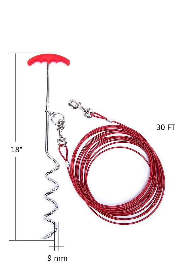 EXPAWLORER Dog Tie Out Cable and Stake 30 ft Outdoor, Yard and Camping, for Small to Medium Dogs Up to 60 lbs, 16" Stake, 30 ft Cable