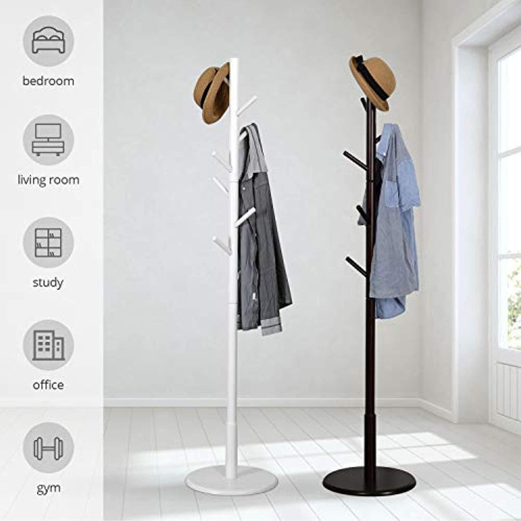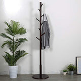Vlush Sturdy Wooden Coat Rack Stand, Entryway Hall Tree Coat Tree with Solid Round Base for Hat,Clothes,Purse,Scarves,Handbags,Umbrella-(8 Hooks,Dark Brown)