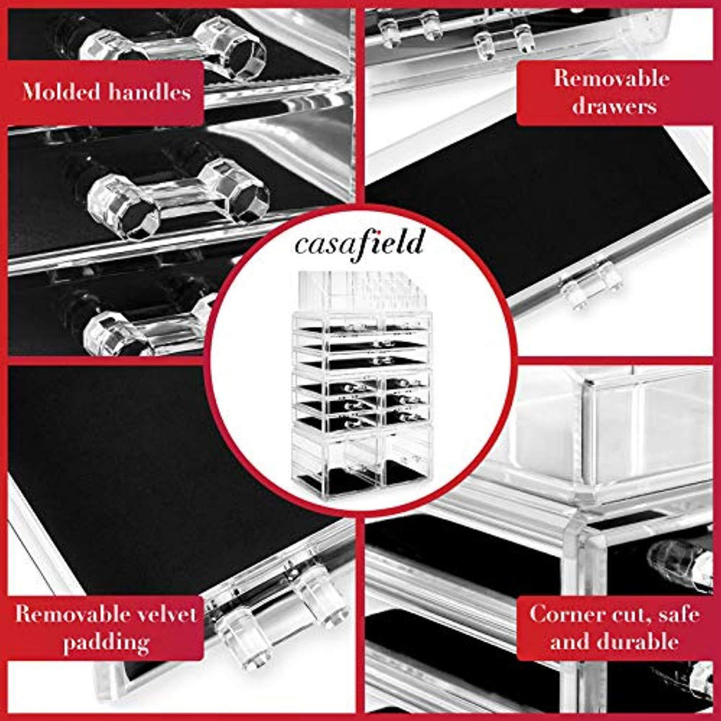 Casafield Acrylic Cosmetic Makeup Organizer & Jewelry Storage Display Case - Large 16 Slot, 2 Box & 10 Drawer Set - Clear