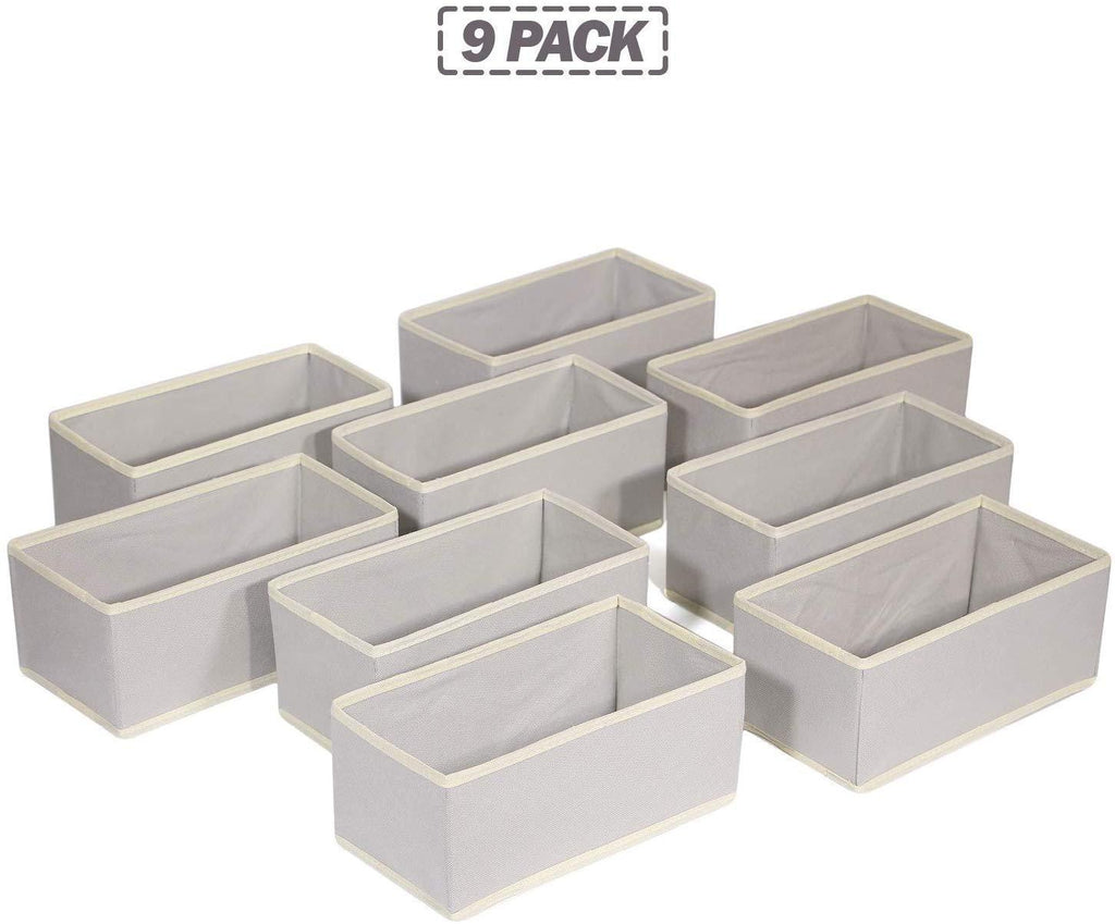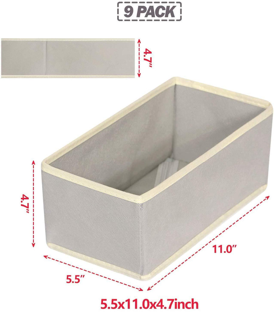 DIOMMELL Foldable Cloth Storage Box Closet Dresser Drawer Organizer Fabric Baskets Bins Containers Divider with Drawers for Clothes Underwear Bras Socks Lingerie Clothing,Set of 9 Grey 090