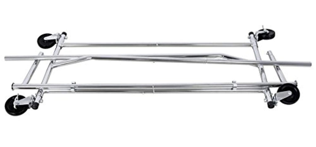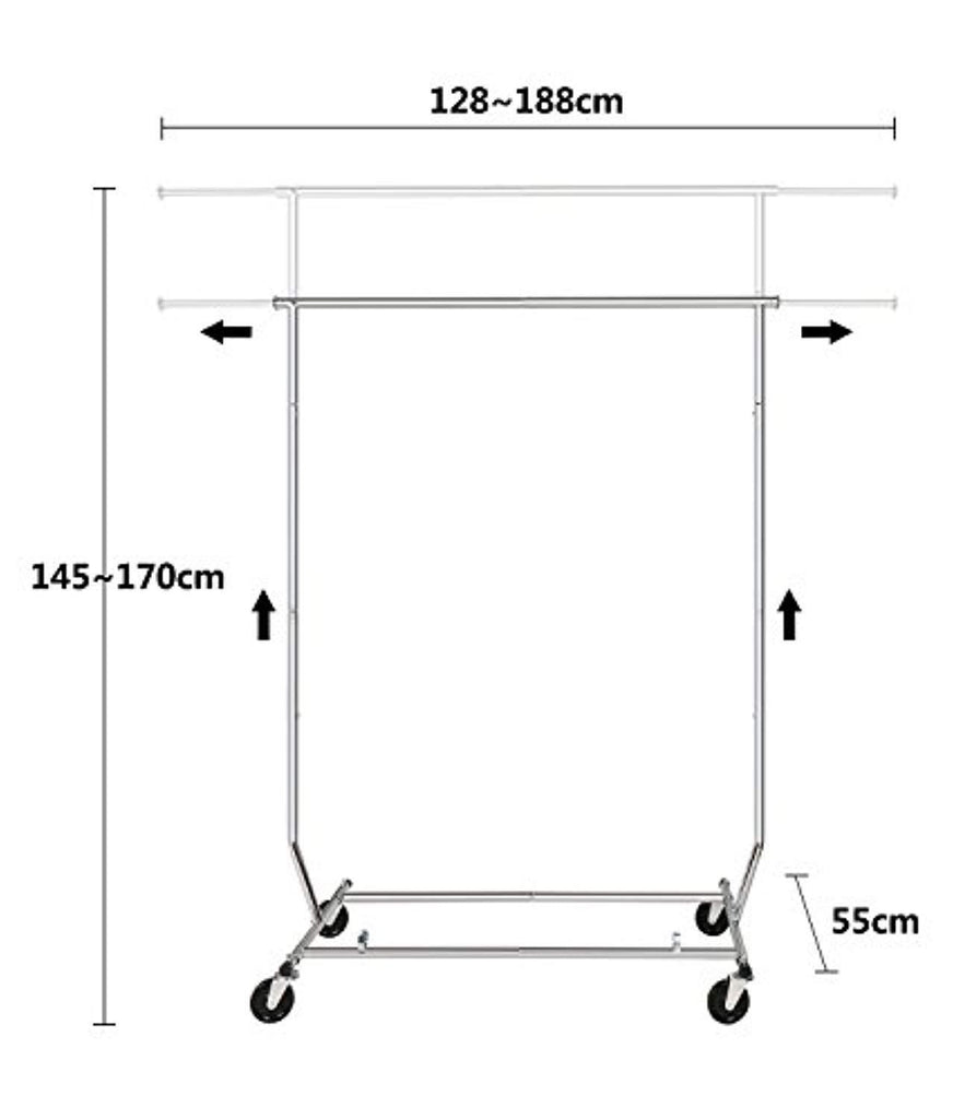 Commercial Grade - 150 Pound Load Capacity Heavy Duty Steel, Chrome Finish Single Rail Heavy duty 4" solid casters, offer more solid flexible mobility and stability Extensible Rod from 48''...