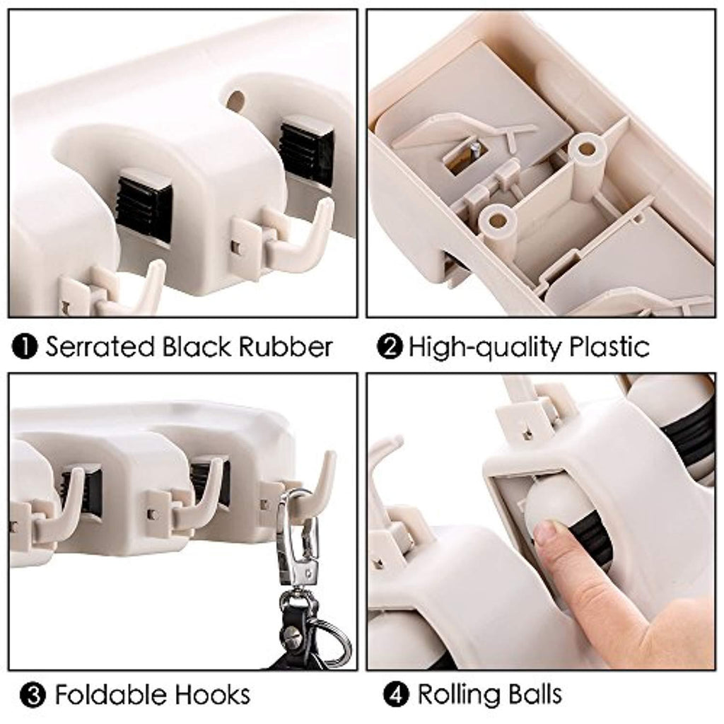 1.Sturdy and Strong: The mop and broom holder organizer is made of high-quality plastic. Each rolling ball holds up to 7-12 pounds of weight. So it can organize most of...