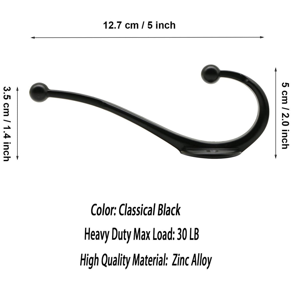 LepoHome 10 Pack Heavy Duty Dual Coat Hooks Wall Mounted with 30 Screws Retro Double Hooks Utility Black Hooks for Coat, Scarf, Bag, Towel, Key, Cap, Cup, Hat