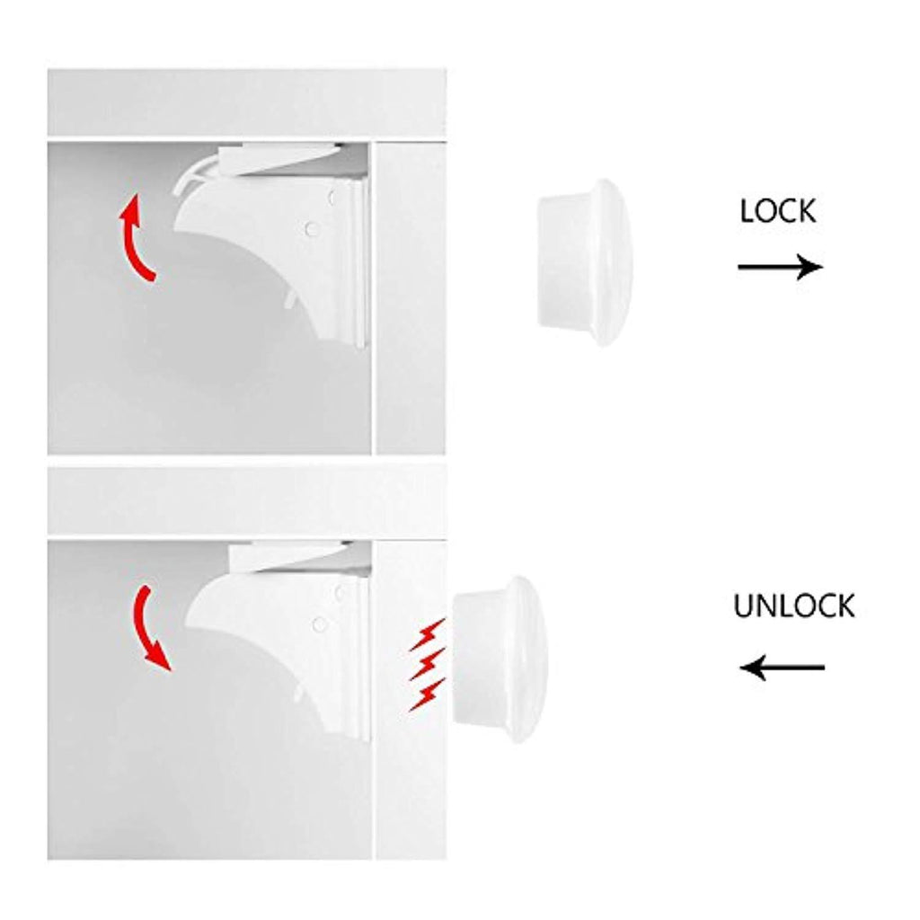 • [GONE ARE THE DAYS OF WORRING ABOUT YOUR KIDS&PETS]Keep all your cupboards and drawers securely locked with the baby locks;Invisible magnetic locks Keep your little ones safe,which allow you to have peace of mind while your children explore your home