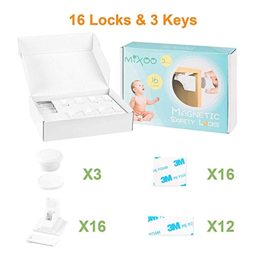 Mixoo Baby Proofing Magnetic Cabinet Locks Child Safety for Drawer, Cupboard,Closet, No Tools or Screws Needed (16 Locks + 3 Keys)