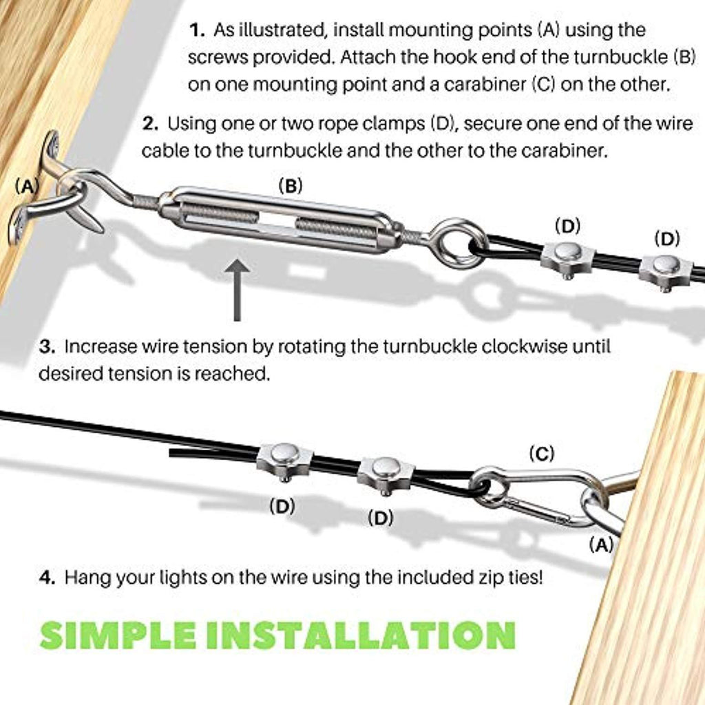 String Light Hanging Kit with Zip Ties For Easy Professional DIY Installation of Indoor and Outdoor Globe Lights