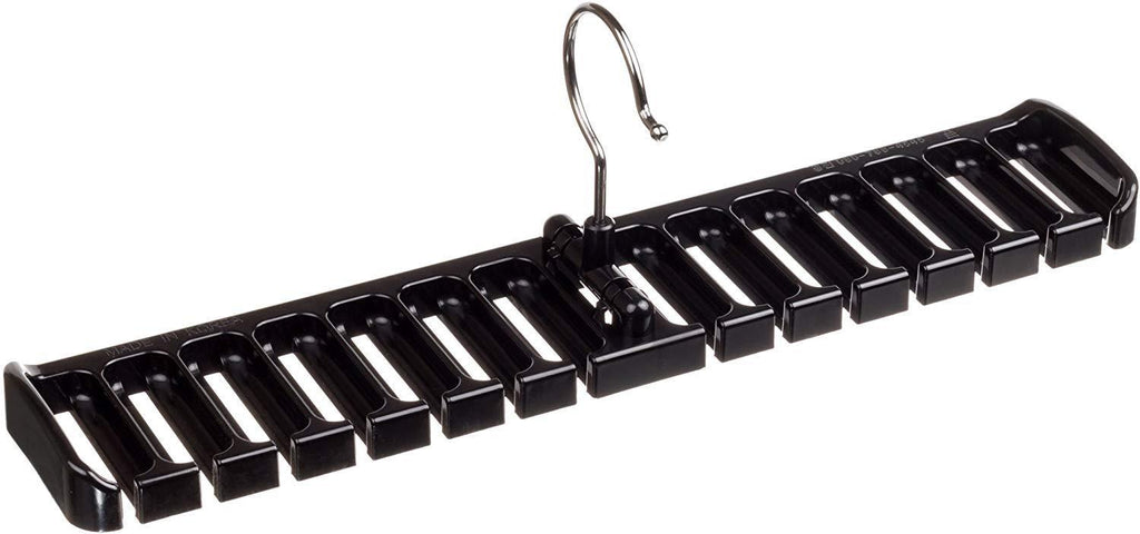 Holds securely up to 14 belts, space-saving and tidying up your closet Stylish Design Black Belt Rack Made of sturdy ABS plastic You may need to balance left-right to keep...
