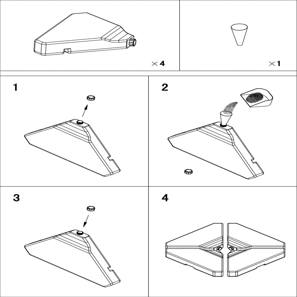 Plastic umbrella base plate set(4 triangular pieces for 1 set), in Black, Sturdy, Lightweight, Convenient Can be filled with water so that plates provide additional weight required to improve umbrella...