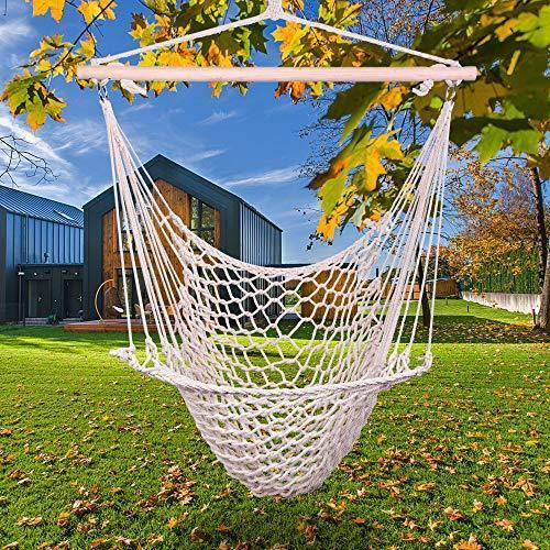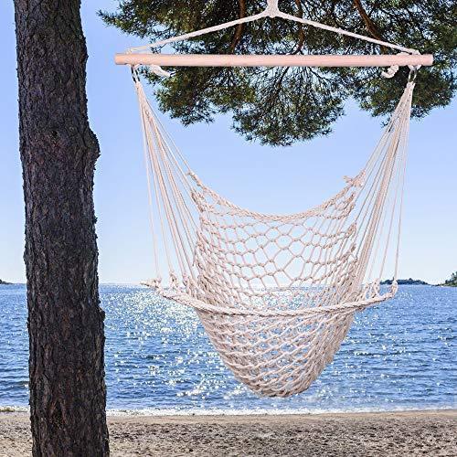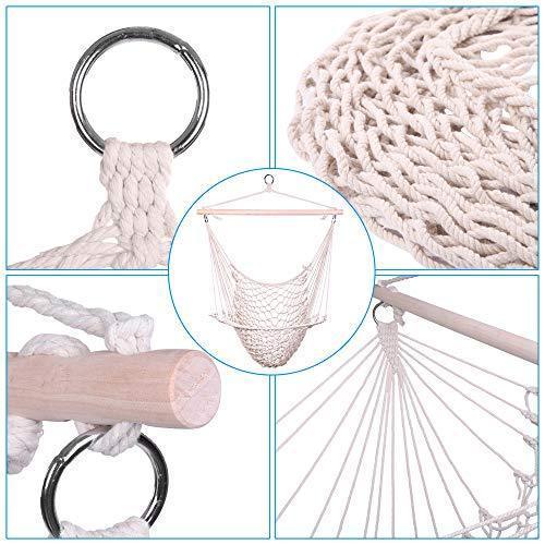 Z ZTDM Hanging Rope Chair, Swing Seat Cotton Canvas Hammock for Indoor Outdoor Garden Yard (Beige net Chair)