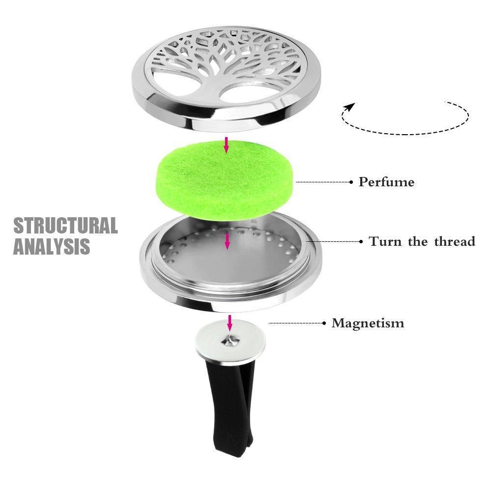 abooxiu 2 Pack Car Aromatherapy Essential Oil Diffuser Vent Clip, Stainless Steel Air Freshener Lockets 24 Felt Pads (Tree + Sunflower)