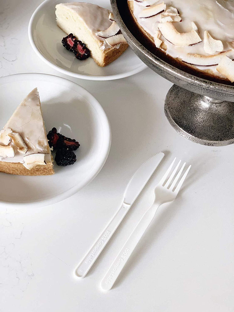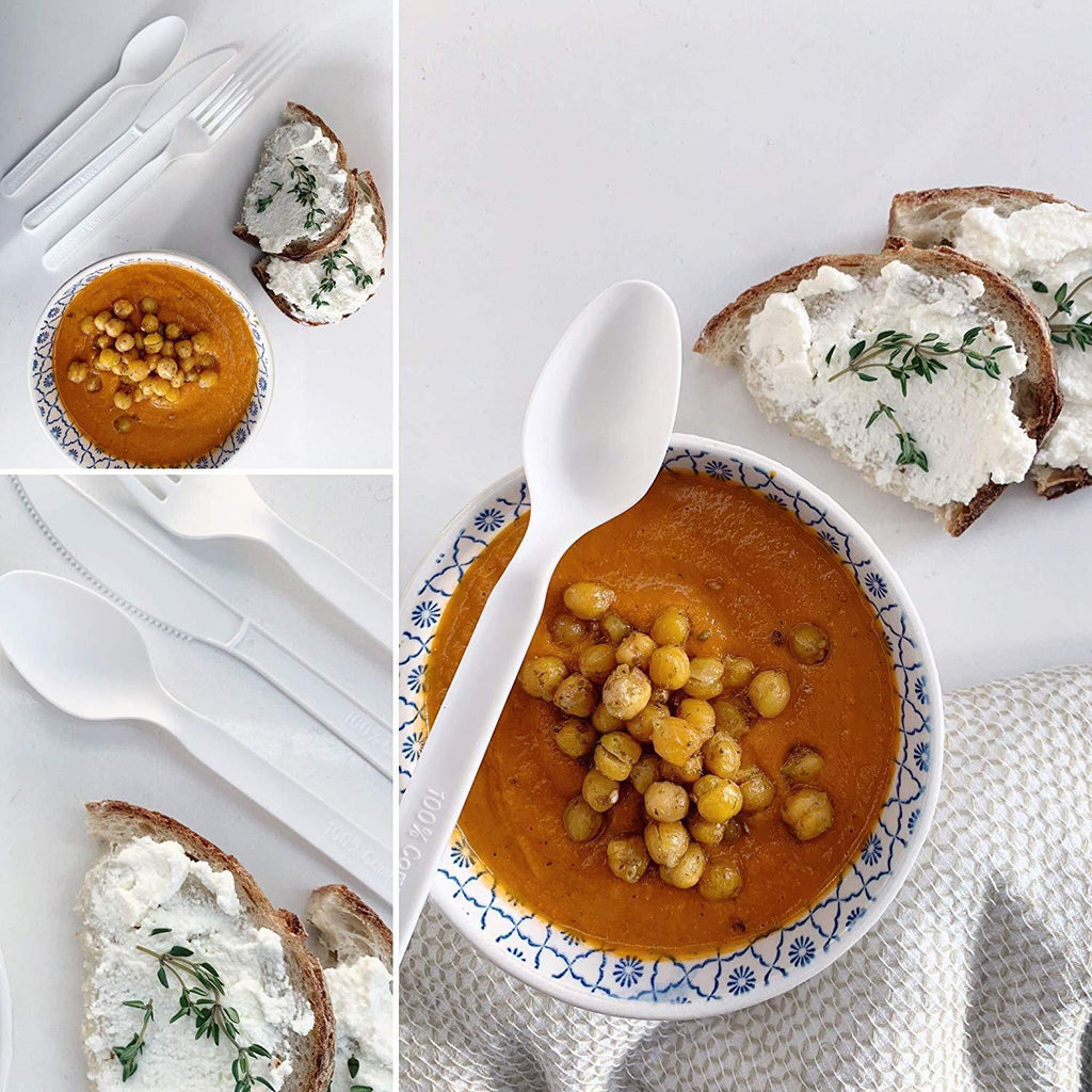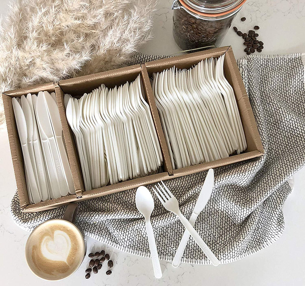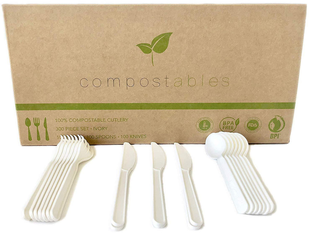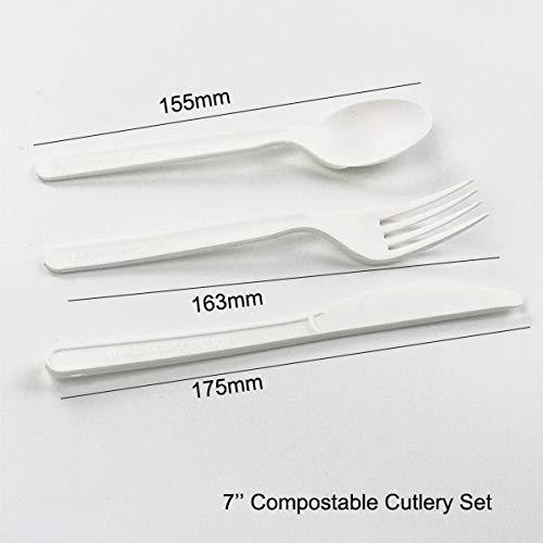 ✅ PREMIUM COMBO CUTLERY SET WITH CONVENIENT TRAY - Compostables disposable cutlery set comes with 100 forks, 100 spoons, 100 knives and a fully recyclable tray. The tray allows you...