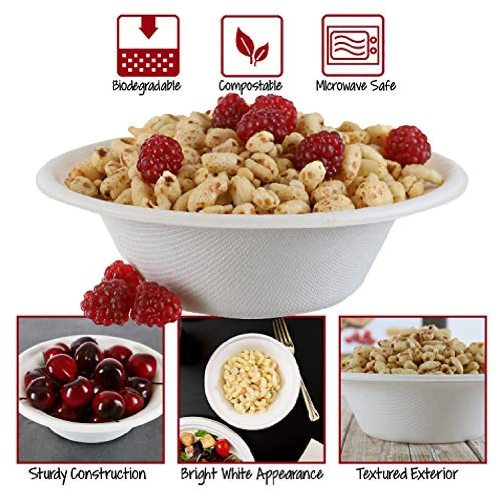 125 Pack - Biodegradable, Compostable Eco Friendly Sugarcane Bowls/Bagasse Disposable 12 oz. Bowl, Safe for Hot and Cold Foods