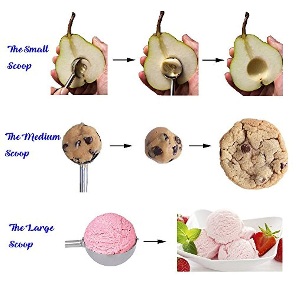 18/8 Solid Stainless Steel Ice Cream Scoop Cookie Scoop Melon Scoop - 3 Count