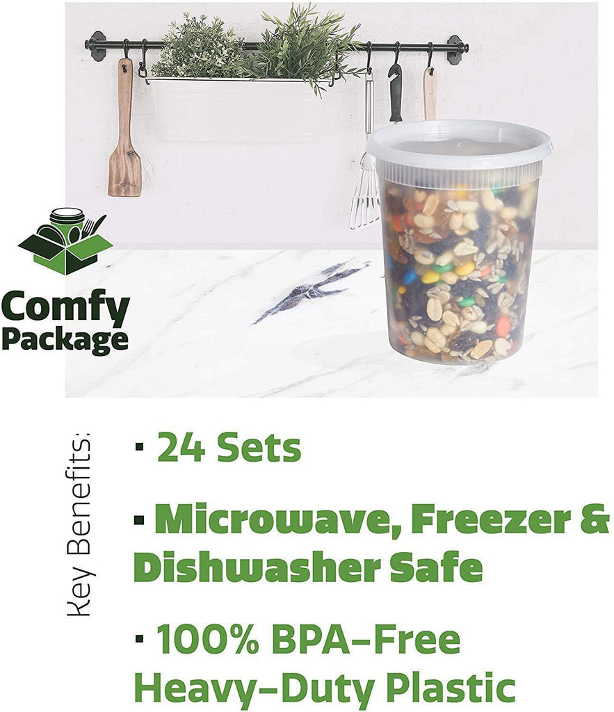 • Comfy Package Premium 32 oz. Plastic Food Containers With Airtight Lids which is perfect for meal prep, portion control, food storage and much more.