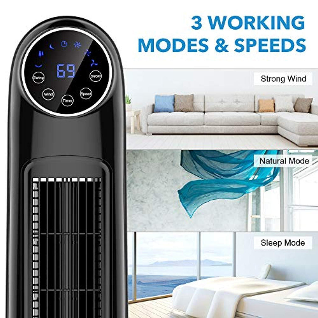48'' Oscillating Tower Fan, Cooling Fan with Remote Control, Digital Timer, Quiet Tower Fan with 3 Modes & 3 Speeds, Bladeless Design, Oscillating Fan 12 Hours Automatic Shut-Off Timer