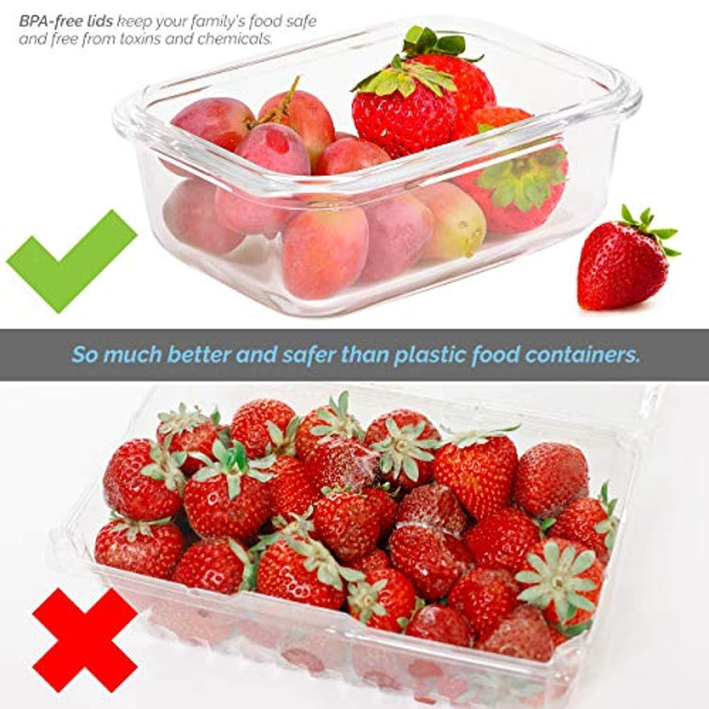 • 🌿GLASS FOOD CONTAINERS OFTEN CHIP & SHATTER EASILY, SHEDDING GLASS IN YOUR FOOD AND TURNING YOUR KITCHEN INTO A DANGER ZONE. Elacra Glass Food Storage Containers are made of DURABLE BOROSILICATE GLASS that won’t break or crack easily like tempered glass. Our high quality, heat-resistant glass keeps your food SAFE FROM MOLD AND OUTSIDE CHEMICALS, while our BPA FREE SNAP LIDS effectively ward off bacteria. SAFE FOR USE IN THE OVEN, MICROWAVE, FREEZER & DISHWASHER!