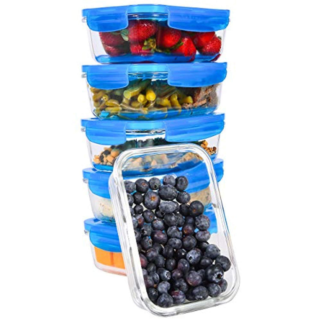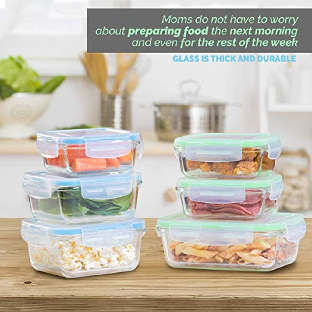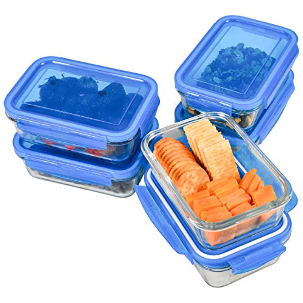 • 🌿STACKABLE CONTAINERS THAT KEEP YOUR FRIDGE NEAT & ORGANIZED AND MAKE MEAL PREP A BREEZE! Our 6-piece 28oz glass container set is designed for more food storage & portion control options: 6 large RECTANGULAR plus 6 BLUE LOCKING LIDS. Our durable glass containers are designed for EASY PORTABILITY, to go right from fridge to lunch box, picnic basket, purse or travel bag. Makes a great bento box, too!