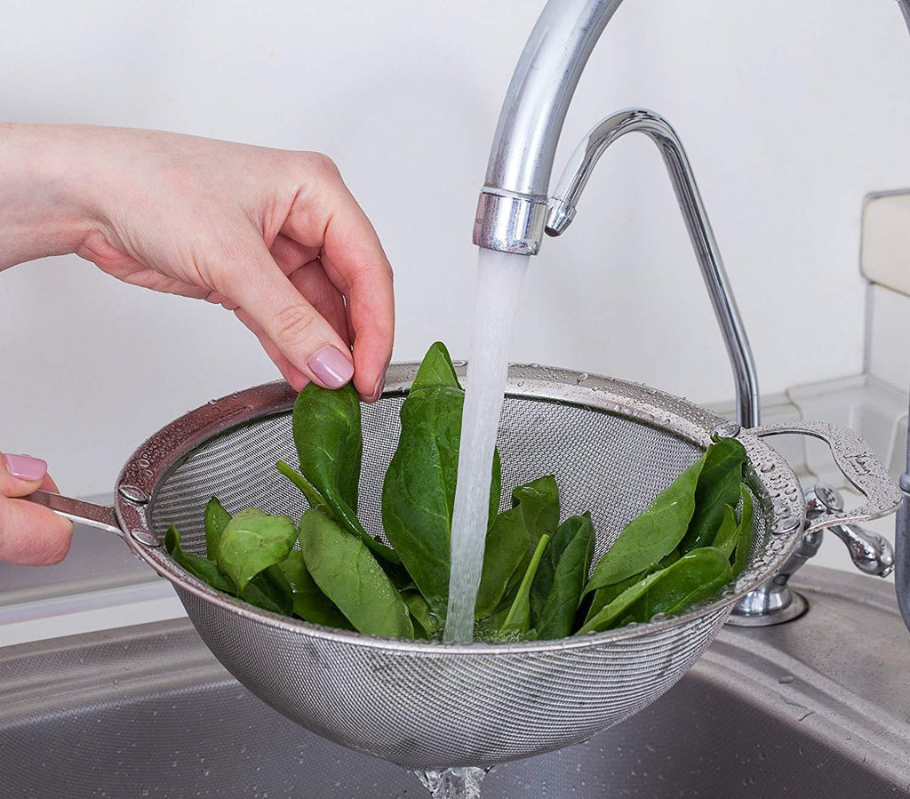 • FINEST MESH STRAINER: Never worry about bits of food like rice or pasta slipping through like with most colanders and sieves. The Yummy Strainer’s two layers of tightly woven mesh catches everything while letting only liquids pass.