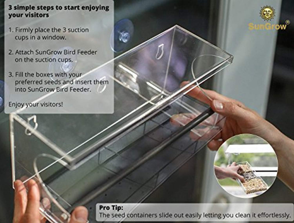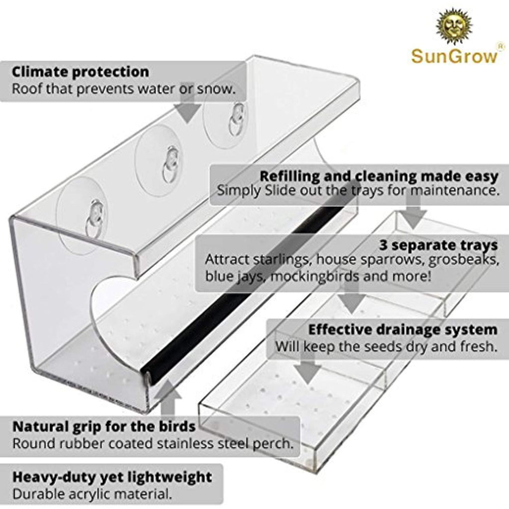CLEAR DESIGN WITH BIG SIZED TRAY WITH 3 PARTS --- This sleek transparent bird feeder has a huge three part food tray. It is large enough to allow multiple birds...
