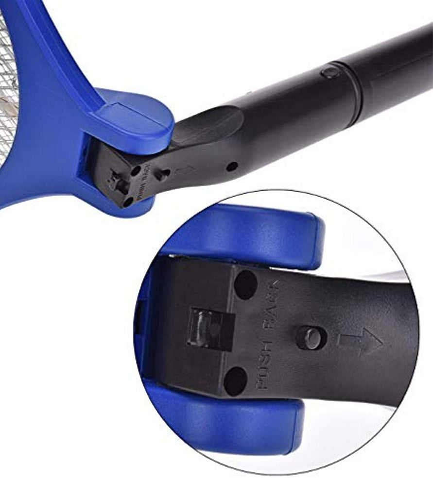 - BATTERIES EASILY REPLACEABLE: Runs on 2x AA (not included). No looking for wall sockets to charge.*******Note: 1.Push the sliding SAFETY switch all the way down toward the ground when not in use to conserve battery. 2.Please click and push down the [push back] button when you want to fold the swatter, Don't use brute force that may broken the Folding lock
