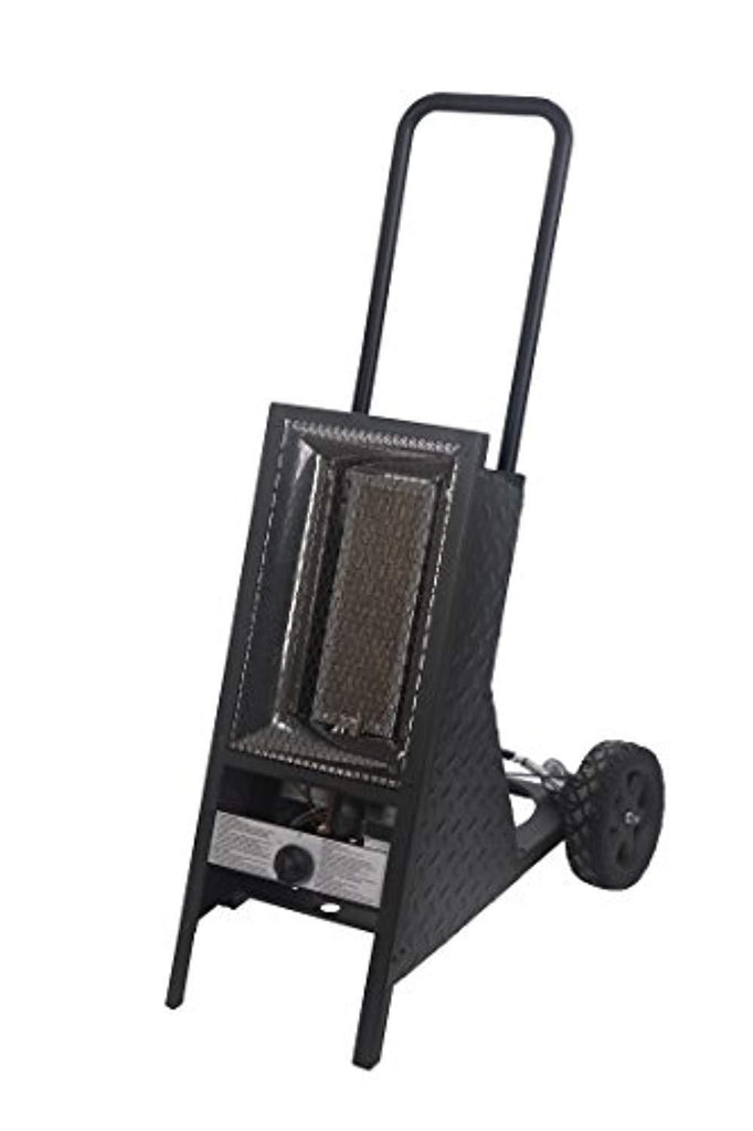 - 35,000-BTU portable propane radiant heater with moving handle and wheels