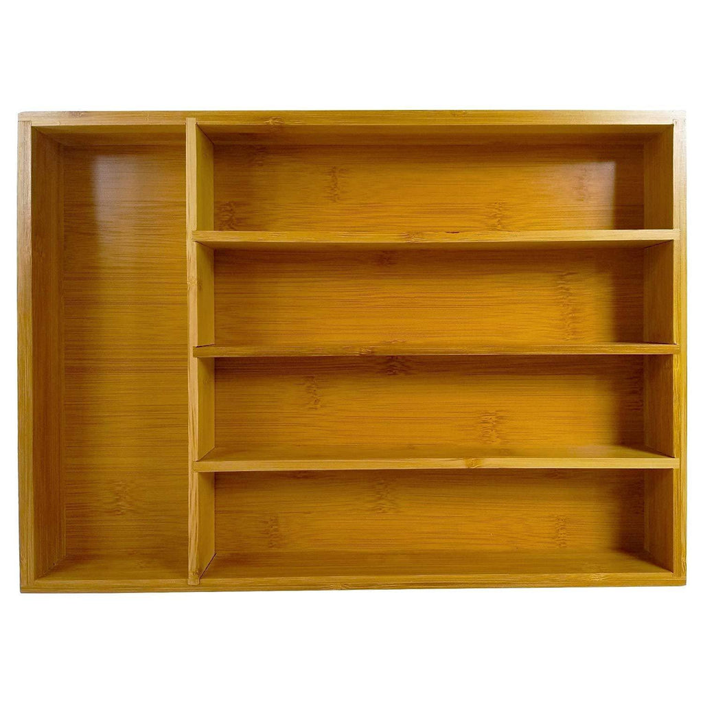 BEST BAMBOO KITCHEN DRAWER ORGANIZER– Organize your cutlery with this stylish and functional bamboo kitchen drawer organizer. FIVE COMPARTMENTS – Our handy silverware tray is designed with you in mind....