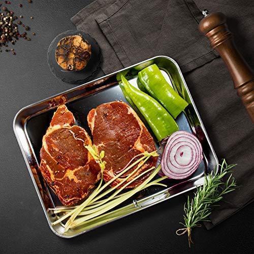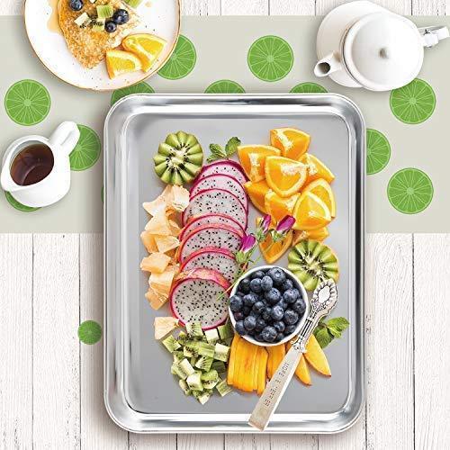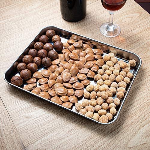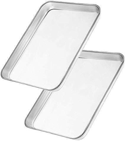 SMALL DESIGN-A small size toaster oven pan made for small food. Smooth roll edge, No rough spot, Superior mirror finished surface, Easy to clean, Dishwasher Safe. DURABILITY-These lightweight cookie trays...