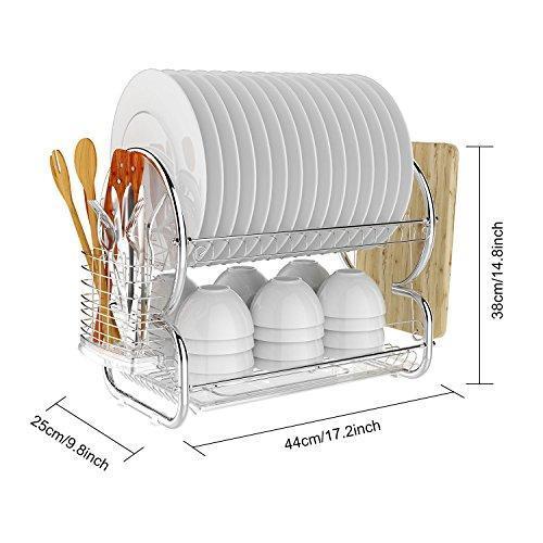 【MODERN DISH RACK 】: The two tier dish rack,S-shaped,unique and chic,size upgrade,up to 17" long.Top Tier places up to 14 pcs plates; down tier places up to 30 pcs bowls;...