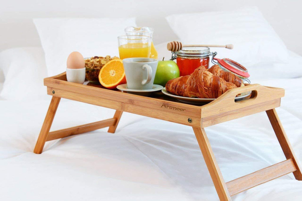 Bed Tray Table with Folding Legs,Serving Breakfast in Bed or Use As a TV Table, Laptop Computer Tray, Snack Tray with Moso Natural Bamboo by Artmeer