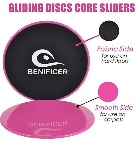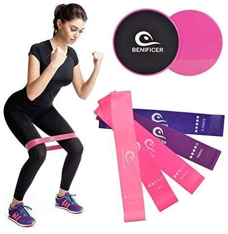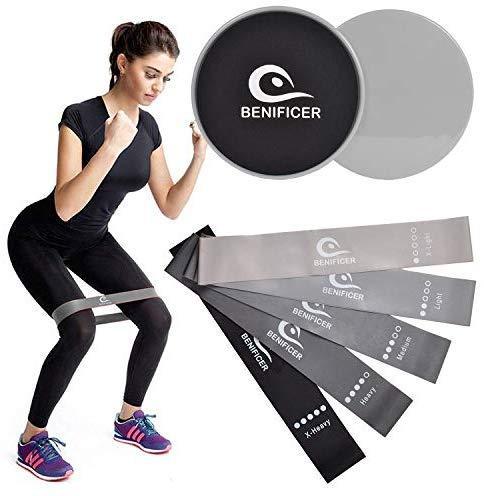 Benificer Core Sliders and Exercise Loop Bands, Set of 5 Resistance Bands with Set of 2 Double Fitness Sliding Gliders Workout Discs for Home Gym, Yoga, Pilates, Crossfit