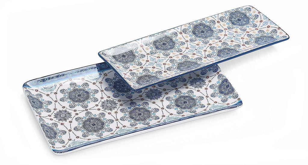 Bico Havana Ceramic 14 inch Rectangular Serving Platter, Set of 2, for Serving Salad, Pasta, Cheese, Ham, Appetizer, Microwave & Dishwasher Safe, House Warming Birthday Anniversary Gift