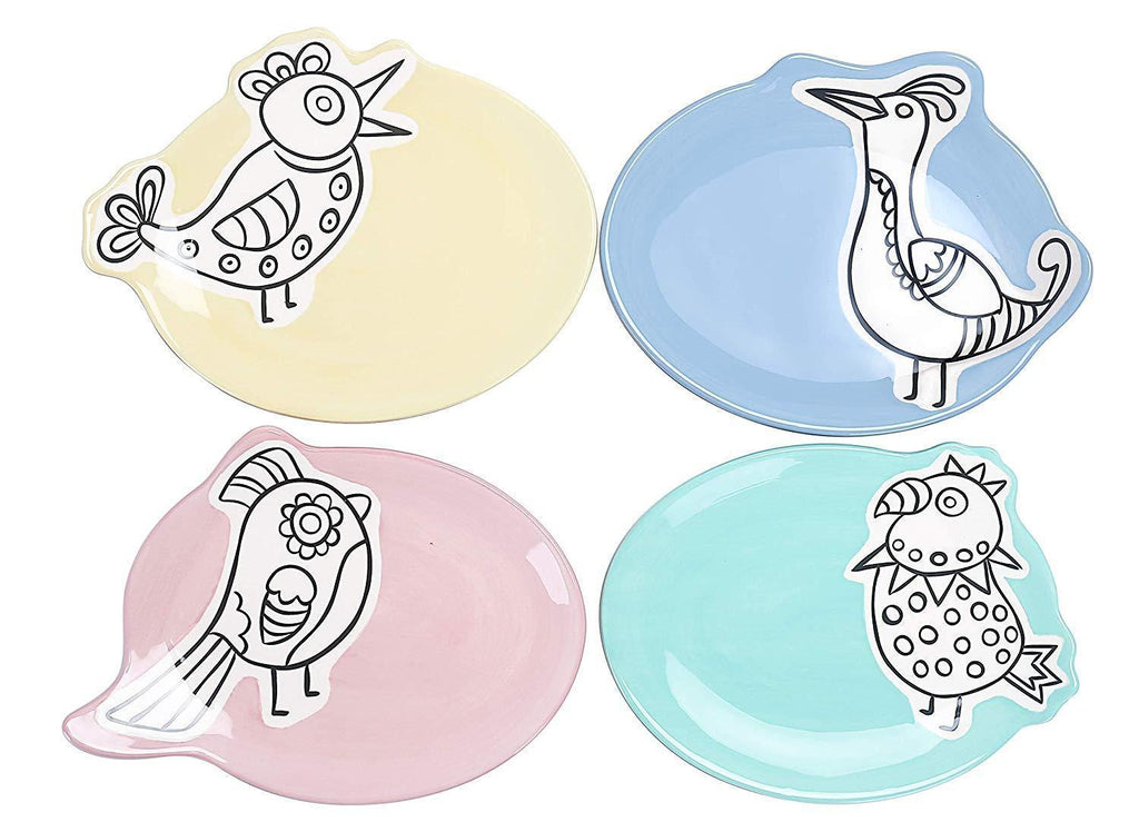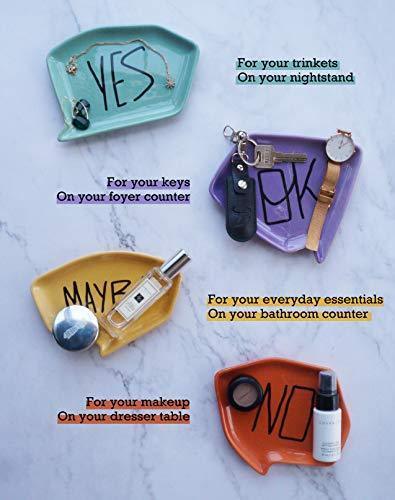 Bico Yes No Maybe Ok Ceramic Appetizer Plates Set of 4, Microwave & Dishwasher Safe, For Dessert, Fruit, Cookie