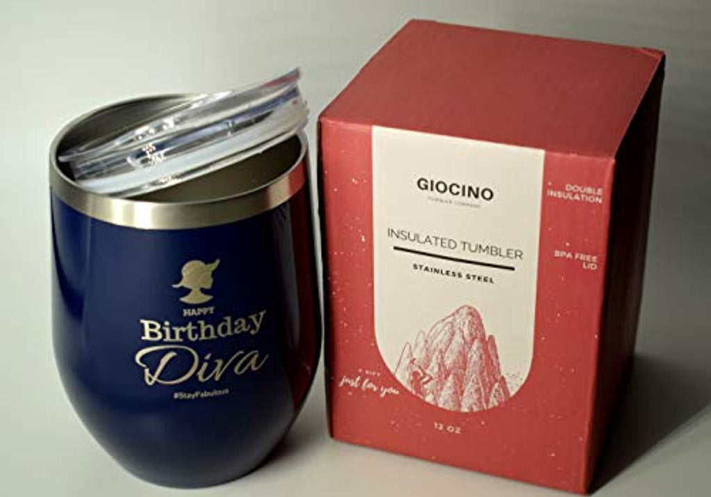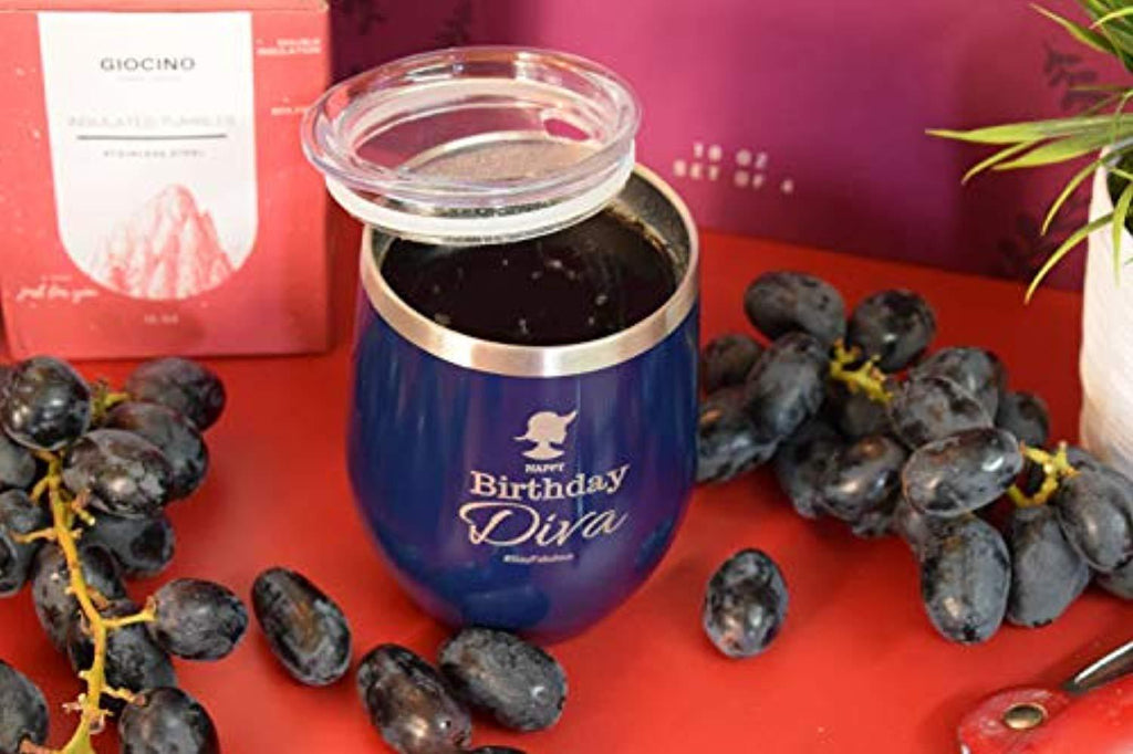 Birthday Gifts For Women, Wine Tumbler Stainless Steel Stemless Wine Glass With Lid - Perfect Birthday Gift For Her -12 Ounce