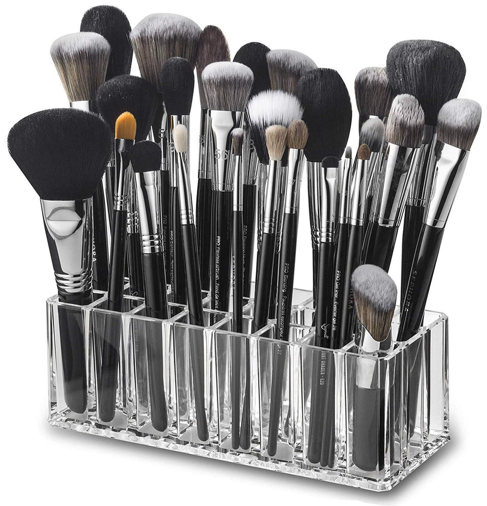 byAlegory Acrylic Makeup Beauty Brush Organizer | 24 Space Cosmetic Storage (CLEAR)