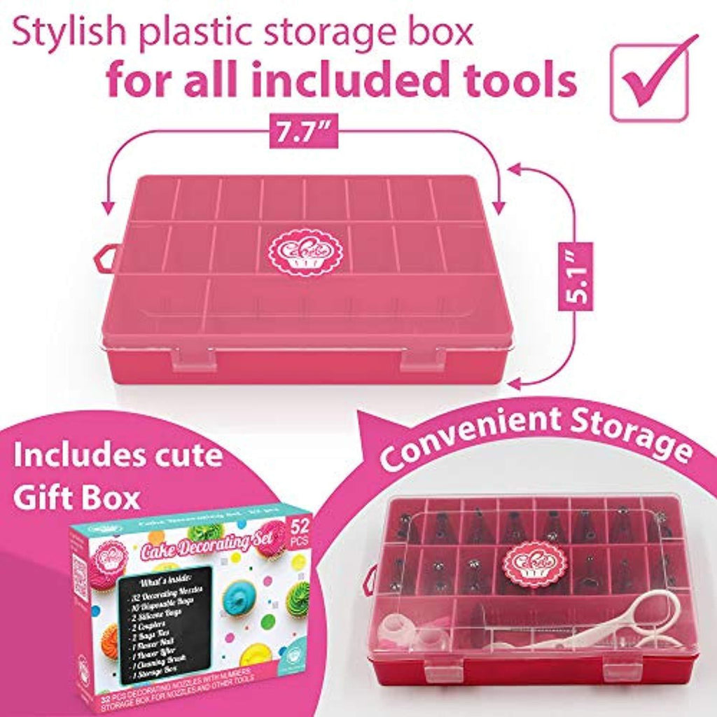 Cakebe 52 pcs Cake Decorating Supplies Kit - Icing Piping bags and Tips Cupcake Decorating Kit with 12 Frosting bags and 32 Numbered Tips - Baking Supplies and Frosting Tools Set for Cupcakes Cookies