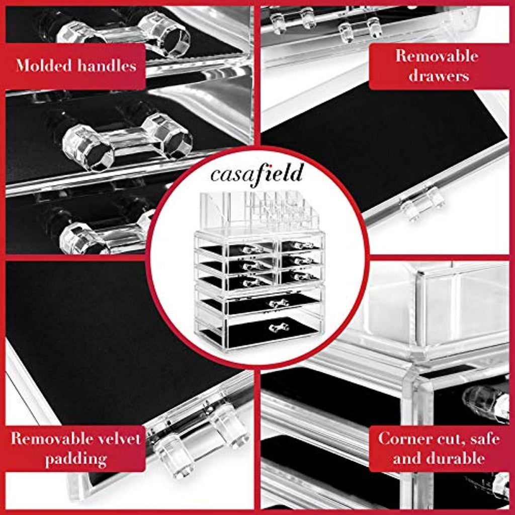 • PREMIUM QUALITY, DURABLE DESIGN: Crafted of premium and durable acrylic with expertly molded handles. The fully removable drawers with protective liners provide you with ample storage space while protecting your jewelry and makeup.