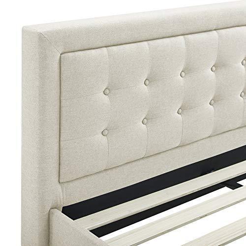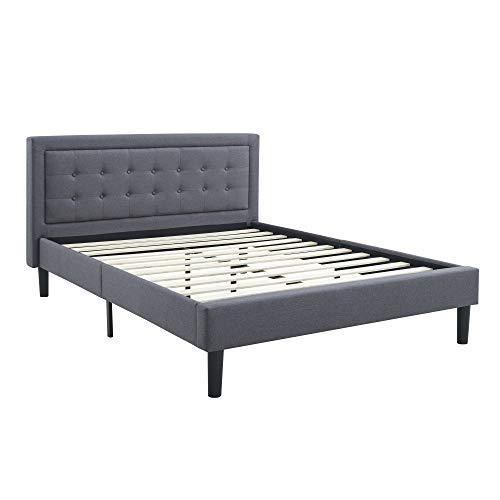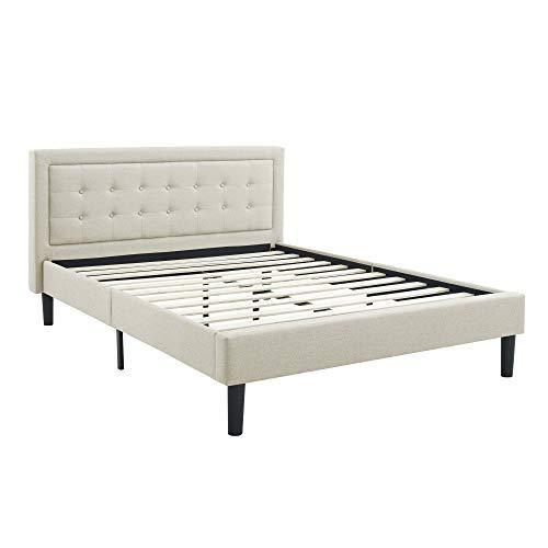 Trendy modern design, this upholstered platform headboard and bed frame is the perfect solution for updating the look of your bedroom Durable wood slat foundation with sturdy center support can...