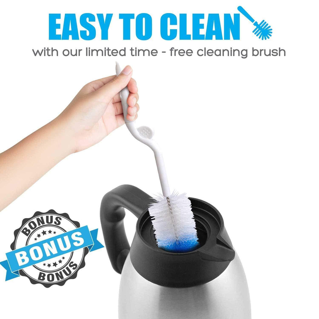 Coffee Carafe (68 Oz) + Free Brush - Keep water hot up to 12 Hours, stainless steel thermos carafes, double walled Large Insulated Vacuum flask, Beverage Dispenser By Vondior
