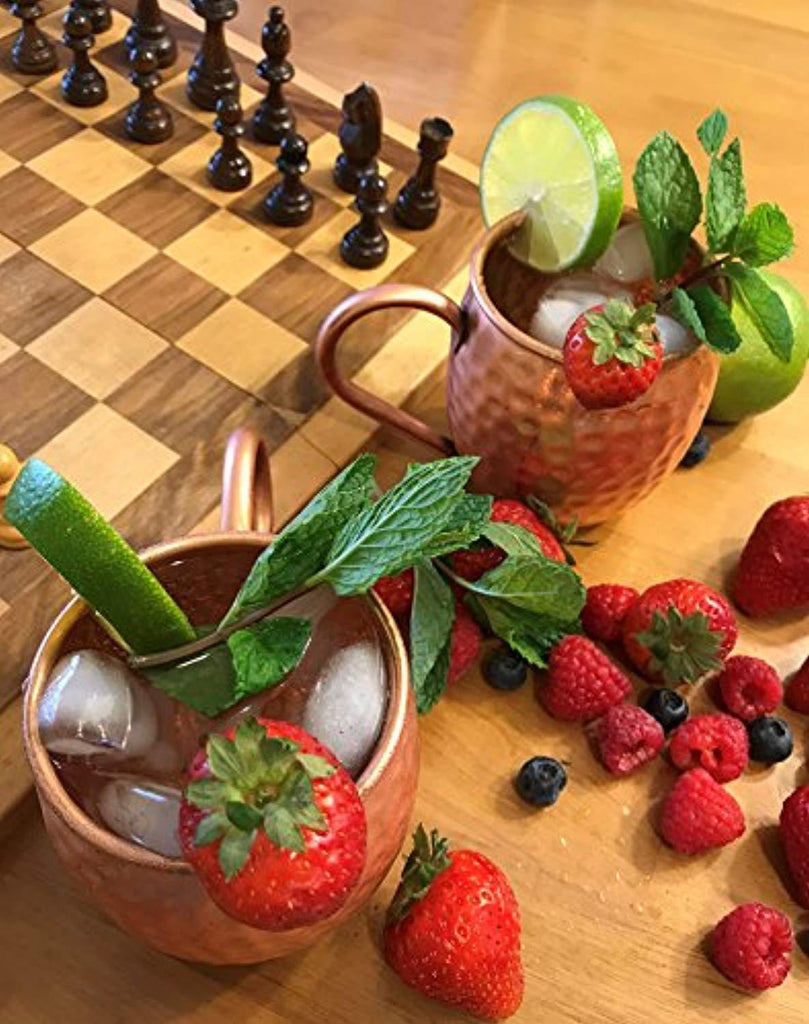 • HAMMERED SOLID COPPER CUP: 16 oz makes these cups the perfect size. Your drinks become cold fast, so you can enjoy your Moscow mule cocktails: caipirinha, mojito, caipiroska, gin, vodka, rum, tequila, and beer. Check out the specialty drinks provided in the recipe booklet included! Also for beverages, tea. Some people leave water overnight in the cup and drink it well balanced the next day.