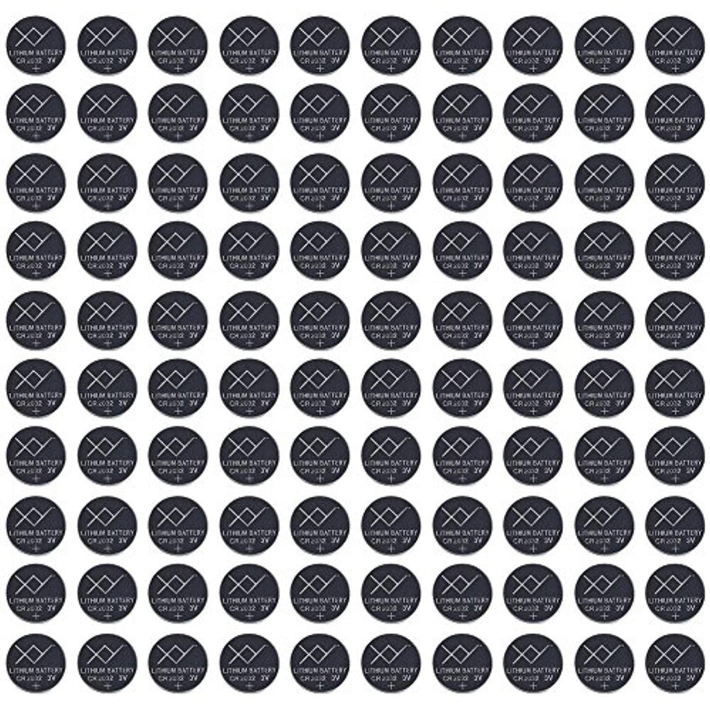 CR2032 Battery (100 Pack) | 220mAh 3 Volt (3V) Lithium Button Cell Coin Battery | Watch Batteries for Key Fobs, Garage Door Opener, TV Remote, Motherboard,...