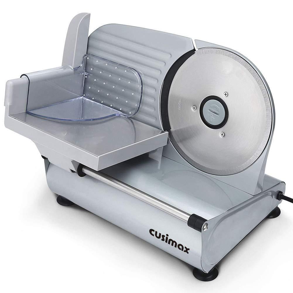 CUSIMAX Food Slicer, Electric Meat Slicer with 7.5’’ Removable Stainless Steel Blade and Pusher, Deli Cheese Fruit Vegetable Bread Cutter, Adjustable Knob for Thickness, Food Carriage & Non-Slip Feet, Compact, Black, Commercial & Home Use