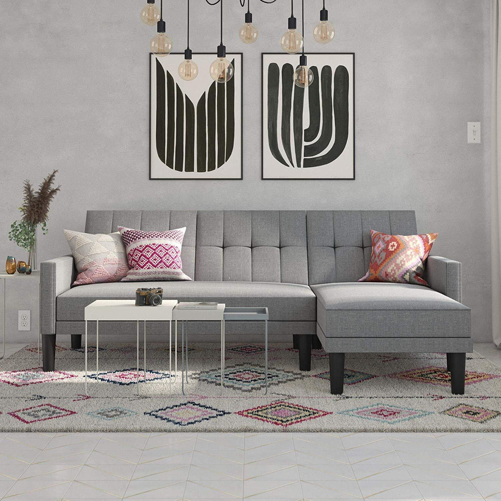 DHP Haven Small Space Sectional Futon Sofa, Black Faux Leather