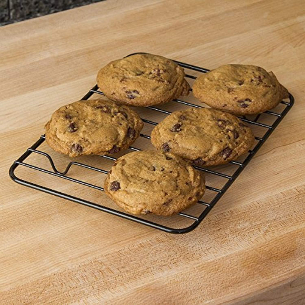 - SET INCLUDES – 8.5” x 6.5” Cake Pan, 8.5” x 6.5” Cookie Sheet, 10.25” x 7” 6-Cup Muffin Pan and 7.5” x 5.5” Cooling Rack